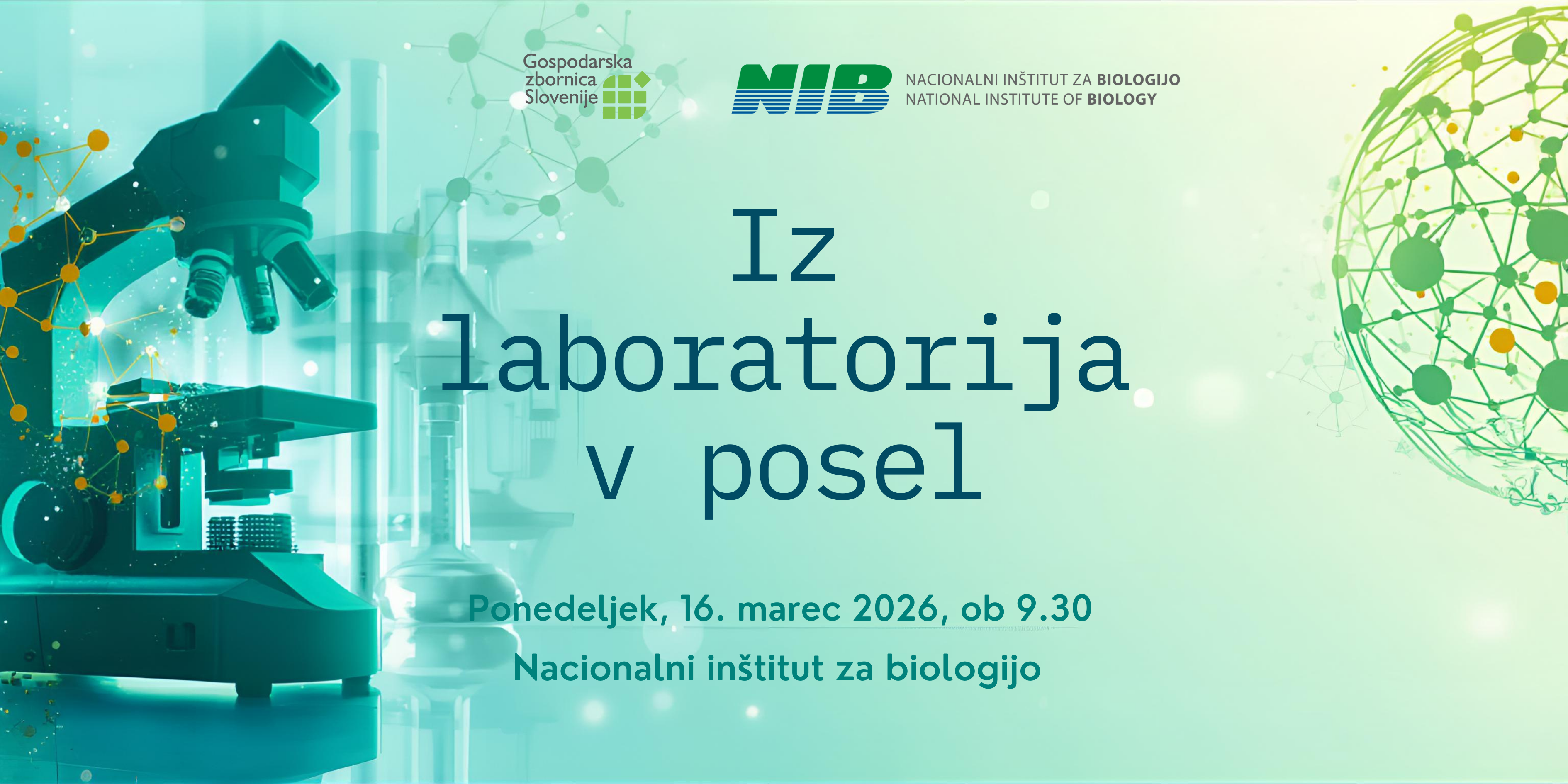 Gospodarska zbornica Slovenije v okviru pobude Iz laboratorija v posel vabi podjetja na ekskluziven obisk Nacionalnega inštituta za biologijo, kjer bomo skupaj odpirali vrata znanja, raziskav in konkretnih priložnosti za sodelovanje.
