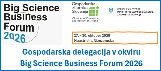 - 10. aprila ob 13. uri bo online predstavitev Big Science Business Forum-a 2026. Interes za udeležbo pošljite na vanja.bele@gzs.si