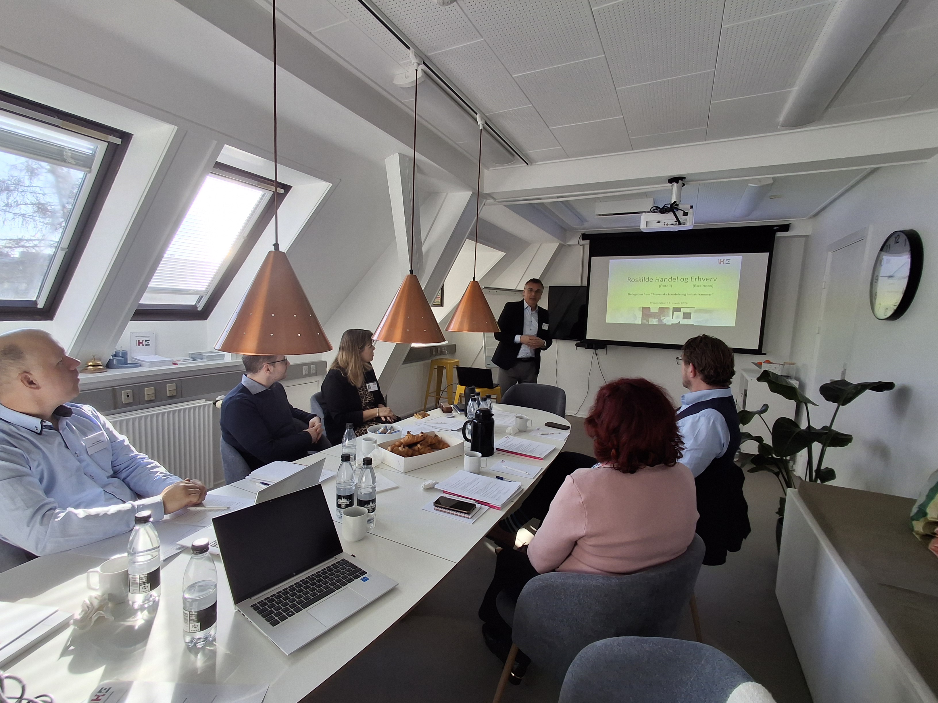Obisk se je nadaljeval v Roskilde, kjer je delegacija raziskovala lokalni poslovni ekosistem. Srečanja z Roskilde Handel & Erhverv, obisk podjetja IoT Fabrikken ter razprave z Lindskov Communication in sindikatom 3F – Fagligt Fælles Forbund Roskilde so osvetlile preplet gospodarstva, politike in trga dela. Program se je zaključil na Roskilde Kommune, kjer so izpostavili vlogo javnih institucij pri podpori razvoju okolja.