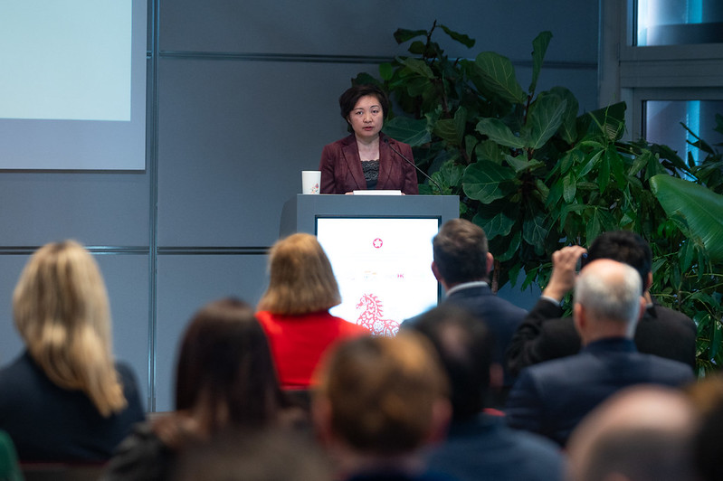 Slavnostne nagovore so podali minister za finance Klemen Boštjančič, veleposlanica LR Kitajske Kang Yan, direktor HKETO Berlin Indiana Wong ter mag. Marjana Majerič, izvršna direktorica GZS za strateški razvoj in internacionalizacijo.
