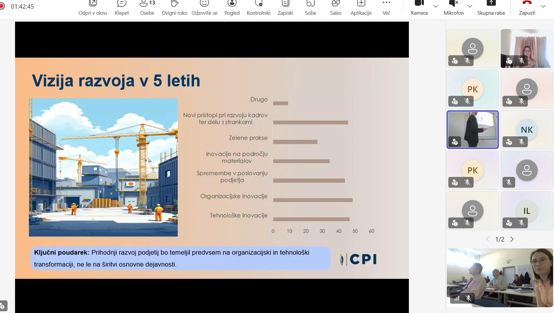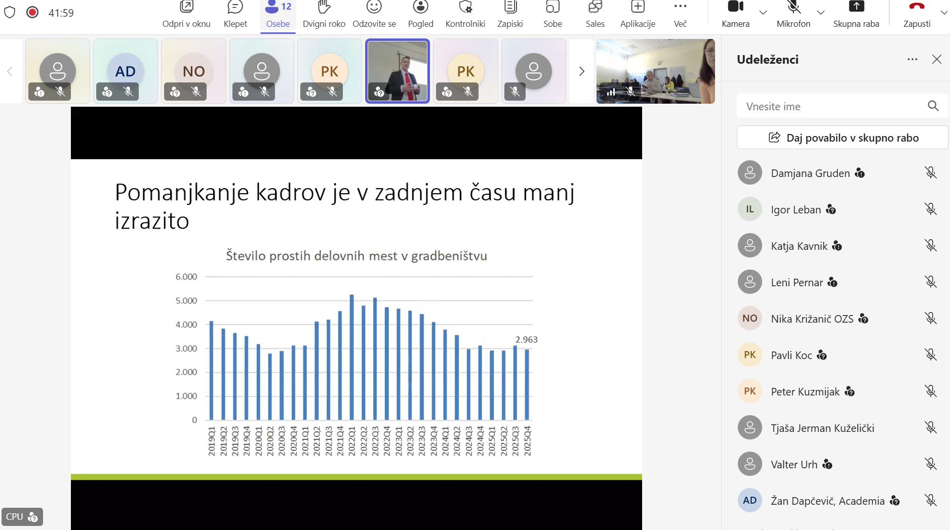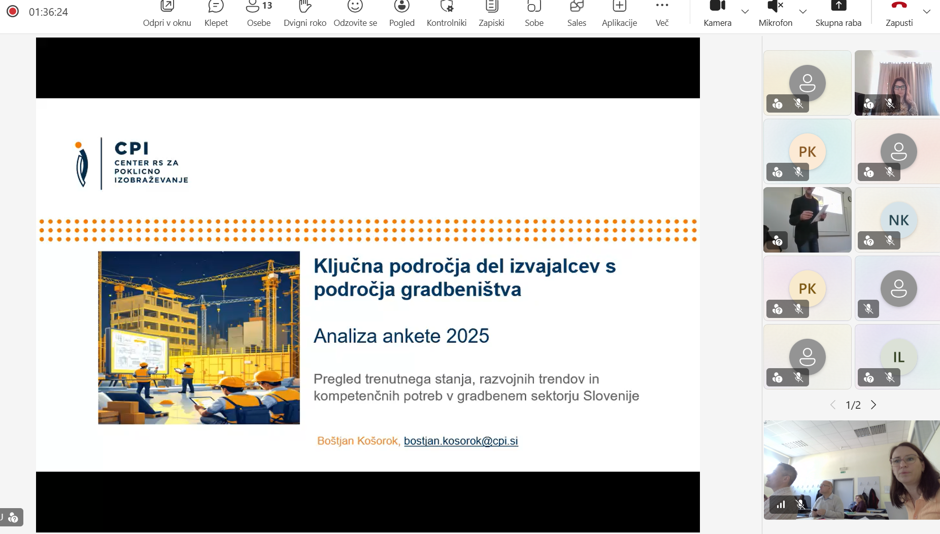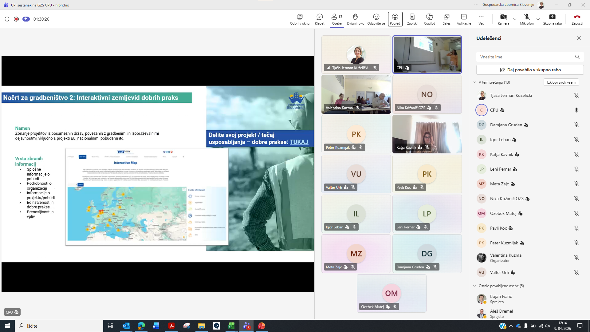 Ljubljana, 9. april 2026 – Na GZS – Zbornici gradbeništva in industrije gradbenega materiala (ZGIGM) je danes potekalo strokovno srečanje deležnikov s področja gradbeništva, izobraževanja in oblikovanja politik, namenjeno razpravi o prihodnjih potrebah po znanjih, kompetencah in kadrih v gradbenem sektorju. Dogodek, ki je potekal v hibridni obliki, smo organizirali v sodelovanju s Centrom RS za poklicno izobraževanje (CPI RS) in Obrtno-podjetniško zbornico Slovenije (OZS). Srečanje je bilo tesno povezano z aktualno nacionalno prenovo poklicnih standardov, ki predstavljajo temelj za izobraževalne programe in sistem nacionalnih poklicnih kvalifikacij. CPI RS je predstavil inovativen pristop k analizi stanja v sektorju, ki temelji na kombinaciji več metod – od anketiranja podjetij (124 sodelujočih), intervjujev z vsemi relevantnimi gradbenimi šolami, analize podatkov Zavoda RS za zaposlovanje, do spremljanja zaposlitvenih oglasov in delavnic s strokovnjaki. Tak celosten pristop omogoča bistveno boljše razumevanje dejanskih potreb trga dela. Predstavljeni ekonomski kazalniki potrjujejo, da gradbeništvo ostaja eden ključnih stebrov slovenskega gospodarstva, vendar se hkrati sooča z izrazitimi izzivi. Med njimi izstopajo pomanjkanje ustreznih kadrov, vse večja kompleksnost projektov ter naraščajoči pritiski na stroške in roke izvedbe. Analiza je dodatno pokazala pomemben razkorak med znanji, ki jih ponuja izobraževalni sistem, in kompetencami, ki jih podjetja dejansko potrebujejo – zlasti na področju digitalnih znanj, razumevanja procesov, osnovnih tehničnih znanj ter mehkih veščin. Pomemben del razprave je bil namenjen tudi evropskim trendom in zelenemu prehodu, kjer je bilo poudarjeno, da trajnost postaja temeljni princip razvoja gradbeništva in ne več zgolj dodatna vsebina. V tem kontekstu imajo ključno vlogo izobraževalne institucije, ki morajo prihodnje kadre pripraviti na delo v vse bolj kompleksnem in hitro spreminjajočem se okolju. Na dogodku smo predstavili tudi projekt Construction Blueprint 2 (CB2), ki v okviru evropskega Pakta za spretnosti razvija nove pristope k izobraževanju v gradbeništvu. V ospredju so t. i. mikrokompetence – kratki, ciljno usmerjeni programi usposabljanja, ki odgovarjajo na konkretne potrebe trga dela. Slovenski pilot, ki ga razvijamo na GZS ZGIGM, se osredotoča na mikrokompetenco »Reagiranje na dogodke v časovno kritičnih okoljih«, ki krepi sposobnosti odločanja pod pritiskom, organizacijskega odzivanja ter učinkovitega usklajevanja v zahtevnih situacijah na gradbišču. Hkrati projekt CB2 naslavlja tudi razvoj novih, nastajajočih poklicnih profilov v gradbeništvu, ki združujejo tehnična, digitalna in organizacijska znanja. Takšni profili bodo ključni za uspešno izvajanje projektov v prihodnje, zlasti v kontekstu digitalizacije, trajnosti in večje nepredvidljivosti okolja. Srečanje se je zaključilo z razpravo, ki je potrdila velik interes deležnikov za nadaljnje sodelovanje in razvoj novih pristopov. Pred nami je še veliko dela, zato na GZS ZGIGM vabimo vse izobraževalne institucije, podjetja in strokovnjake k aktivnemu sodelovanju pri pilotiranju mikrokompetenc ter vključevanju v evropski Pakt za spretnosti. Le z izmenjavo dobrih praks, inovativnih pristopov in konkretnih izkušenj bomo lahko skupaj oblikovali sodoben, odporen in konkurenčen gradbeni sektor prihodnosti.