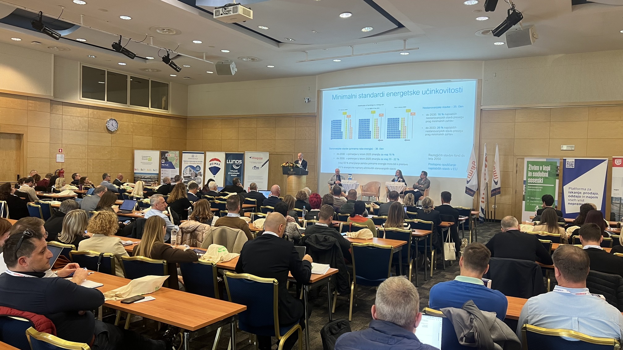 Posvet Poslovanje z nepremičninami je tudi letos združil predstavnike državnih institucij, občin, stanovanjskih skladov, upravnikov, posrednikov, finančnih institucij in strokovne javnosti ter razkril, da je slovenski stanovanjski in nepremičninski sektor pred odločilnim desetletjem. Plenarna razprava je osvetlila tri ključna področja – stanovanjsko politiko, energetske prenove in varnost večstanovanjskih stavb – sekcije pa so ponudile natančnejši vpogled v vsakodnevne izzive upravljanja nepremičnin, nepremičninskega posredovanja in izvajanja stanovanjske politike.